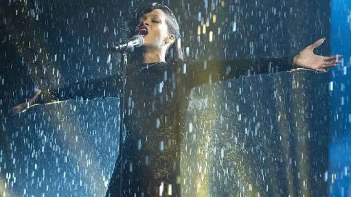 Relembrando seus tempos de "Umbrella (feat. Jay Z)", Rihanna fez chover ontem à noite (25) no palco do X Factor britânico.