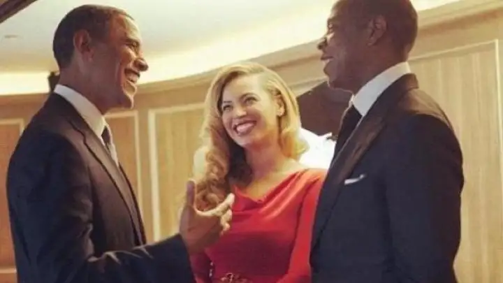 Ela e seu marido Jay-Z já se encontraram algumas vezes com Obama, como pode ser visto na foto ao lado.
