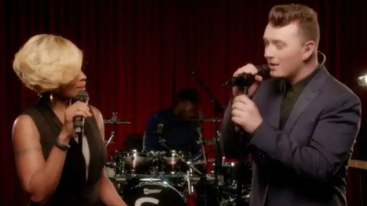 Sam Smith divulgou ontem (2) em seu canal da VEVO um clipe para a nova versão do single "Stay With Me", em parceria com a cantora Mary J. Blige.
