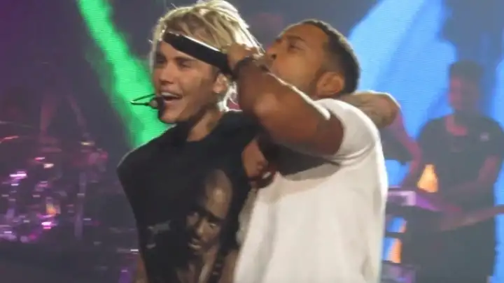 O rapper Ludacris subiu ao palco para entoar seu verso no mega hit "Baby", de 2010, e dançou junto ao canadense durante o refrão chiclete da faixa.
