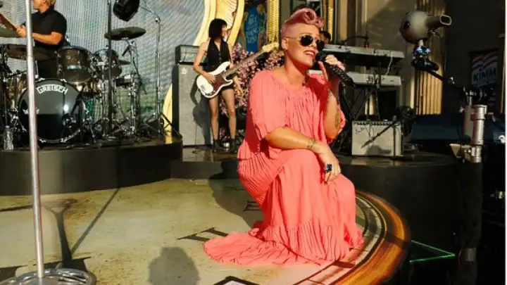 A cantora Pink participou recentemente do programa americano Jimmy Kimmel Live.