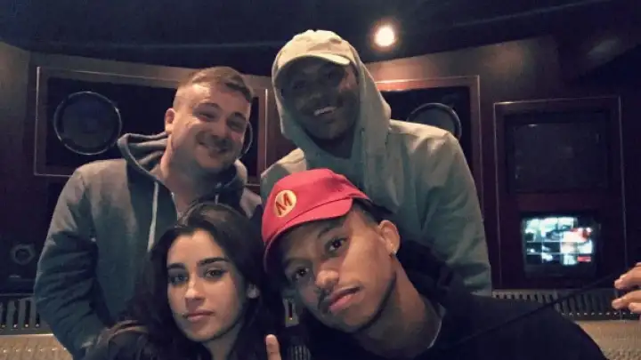 Lauren Jauregui, um quinto do Fifth Harmony, foi fotografada ao lado dos produtores Tim Suby, Ljay Currie e The Rascals em um estúdio em Los Angeles.
