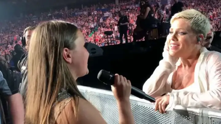 A hashtag se espalhou e chegou até a americana, que abriu o microfone para a jovem mostrar os seus dotes em "F**kin' Perfect", durante um momento mais intimista do concerto."Foi sobre você que eu li a respeito no noticiário? Você que é a cantora? Quer vir cantar alguma coisa?", disse.