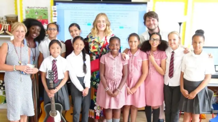 Além de surpreender as crianças com sua presença, a cantora assistiu aos alunos tocando e cantando a canção "Hallelujah", de Leonard Cohen, em um pequeno coral.