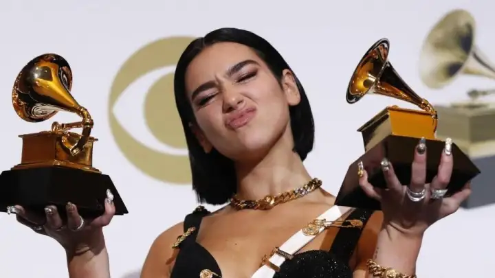 "Sou duas vezes ganhadora do Grammy!!! Estou muito honrada e grata por este momento. Enviando muito amor para os meus fãs, minha família, minha equipe, a todos os artistas incríveis com quem trabalhei e colaborei. Um verdadeiro sonho se tornando realidade! Obrigada", postou Dua Lipa, incluindo uma foto sua com o gramofone.