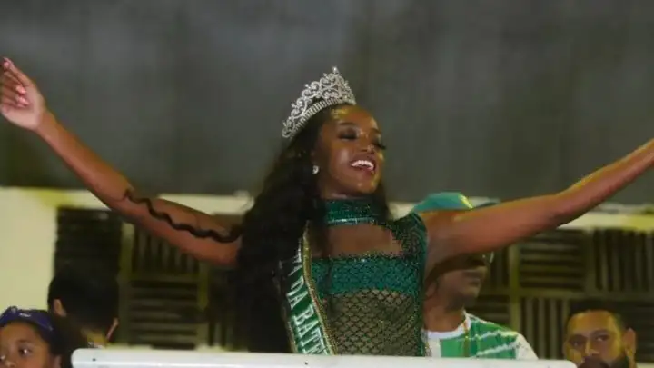 Durante o evento, IZA, que nasceu no bairro de Olaria, na Zona Norte do Rio, área que compõem o berço da escola, e ocupará o posto que foi da bombeira Flávia Lyra, chegou vestida com as cores da agremiação, verde e dourado, posou para fotos e partiu para o samba.