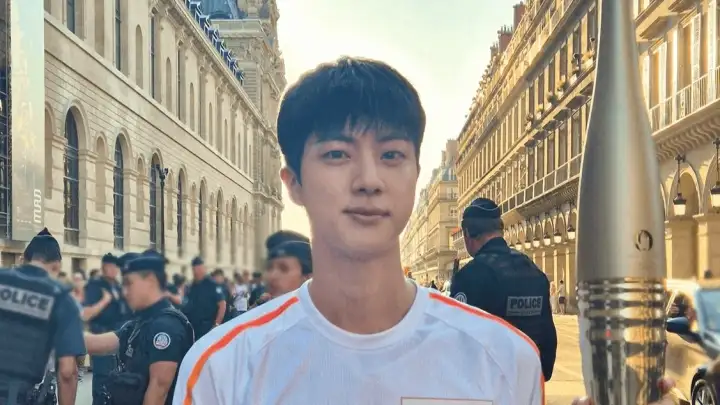 Jin, do BTS, foi o representante da Coreia do Sul para o revezamento da tocha olímpica em Paris neste domingo (14). O cantor, que encerrou o serviço militar de sue país em junho, carregou a tocha por 200 metros, saindo da Rue de Rivoli em direção ao Museu do Louvre, e foi escoltado pela polícia e acompanhado por milhares de pessoas durante o percurso, além de fãs do grupo de k-pop.