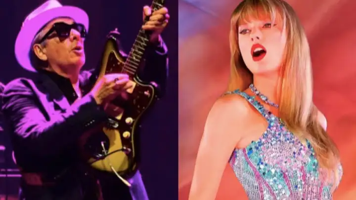 Durante uma recente participação no podcast Rockonteurs, comandado por Gary Kemp e Guy Pratt, Elvis Costello surpreendeu ao traçar paralelos entre a composição de Taylor Swift e a de Bob Dylan, ícone do folk rock (Fotos: Mike Chaiken / Taylor Swift Instagram). O cantor refletiu sobre sua própria trajetória no cenário musical enquanto promovia a reedição deluxe de seu álbum de 1986, *King of America*.